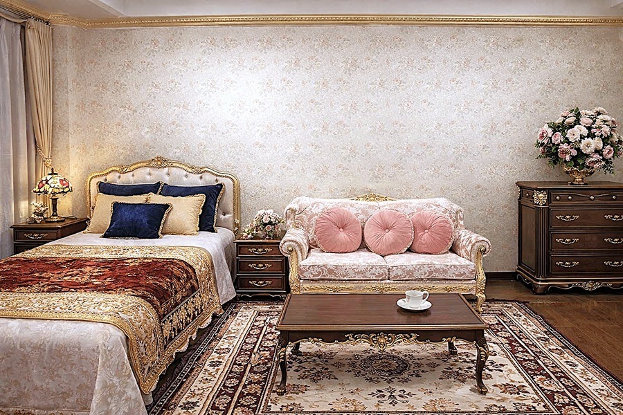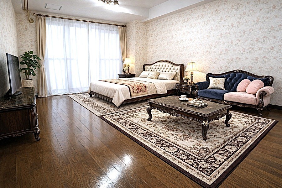 壁紙見本では薔薇の「花びら模様」が"大きすぎるかな?"と思ったのですが、実際に貼ってみると着物や帯のようなおうとつ感のある壁紙で、ゴージャス感あふれる良い雰囲気のお部屋になりました。 女性ならほとんどの方が満足されると思います。