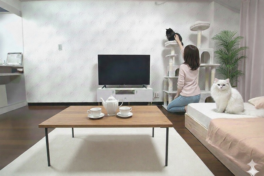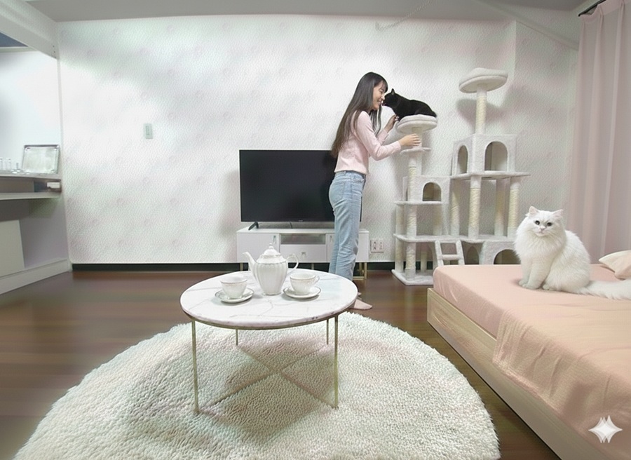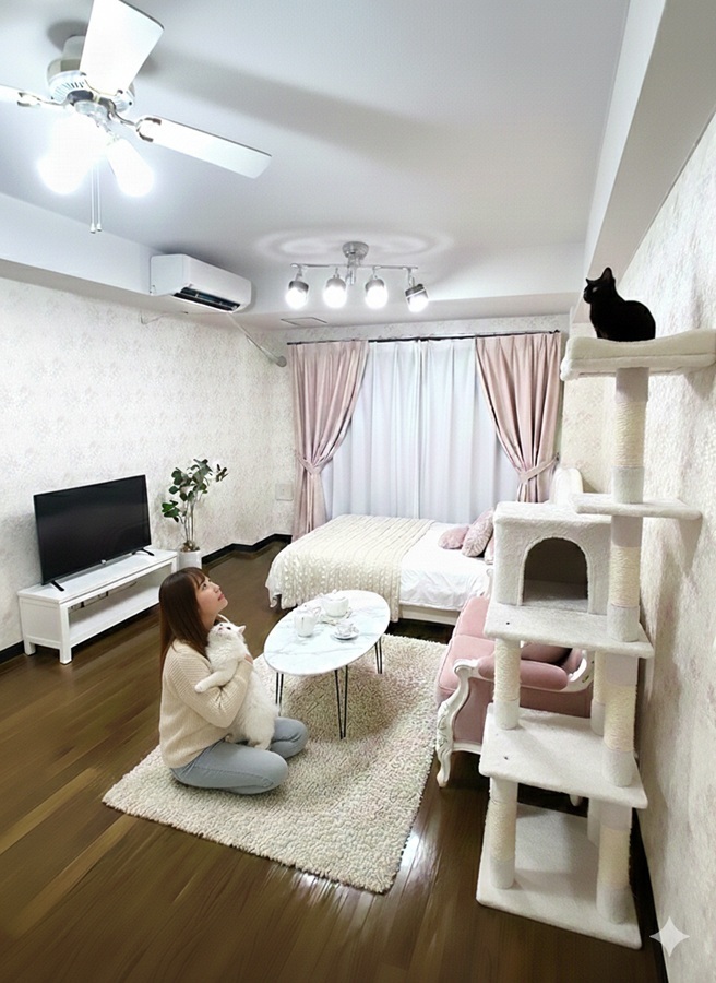 設備としては高価なため、賃貸ではほとんど設置されていない、ペットと共に暮らしたい方のために、「IoT家電」のエアコンを新規設置。 快適にペットと過ごすことが出来ると思います。
