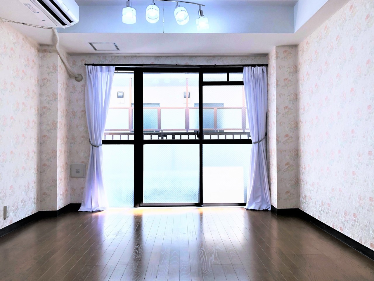 賃貸ではほとんど無い、横幅3メーター以上の広い部屋なので可能な、特注三枚窓の解放感。