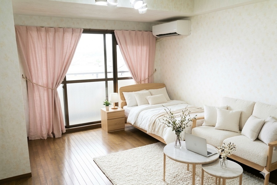 306号室は「南向き角部屋」という、老若男女とも誰もが住みたい部屋のため、白を基調に誰が入居してもいいように、シンプルだけど”おしゃれ”な内装です。
