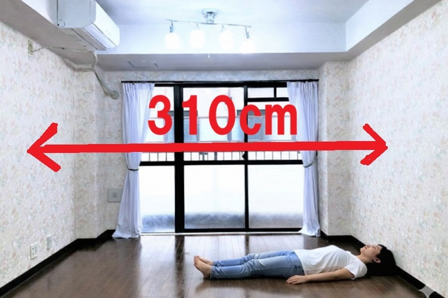 部屋横幅306センチ。 縦幅最長530センチの広々。 実際は11畳程度の広さがありますが、不動産表記上10畳にて表記してあります。
